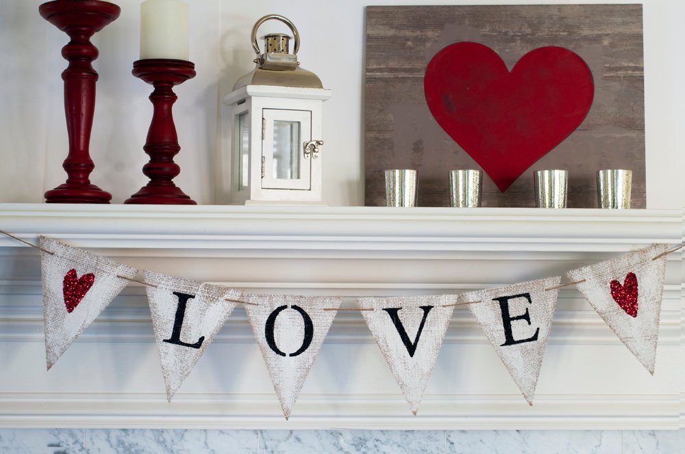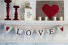 Valentines Day Decor. We use vibrant red glittered hearts and bold black stenciled letters set against white-painted burlap flags to make it all stand out. A gorgeous Love Banner, the perfect Valentine banner or Wedding Decor, hang by a table or use it at a Valentine or Wedding Photo Shoot. Happy Valentines Day or Congratulations on your Wedding.