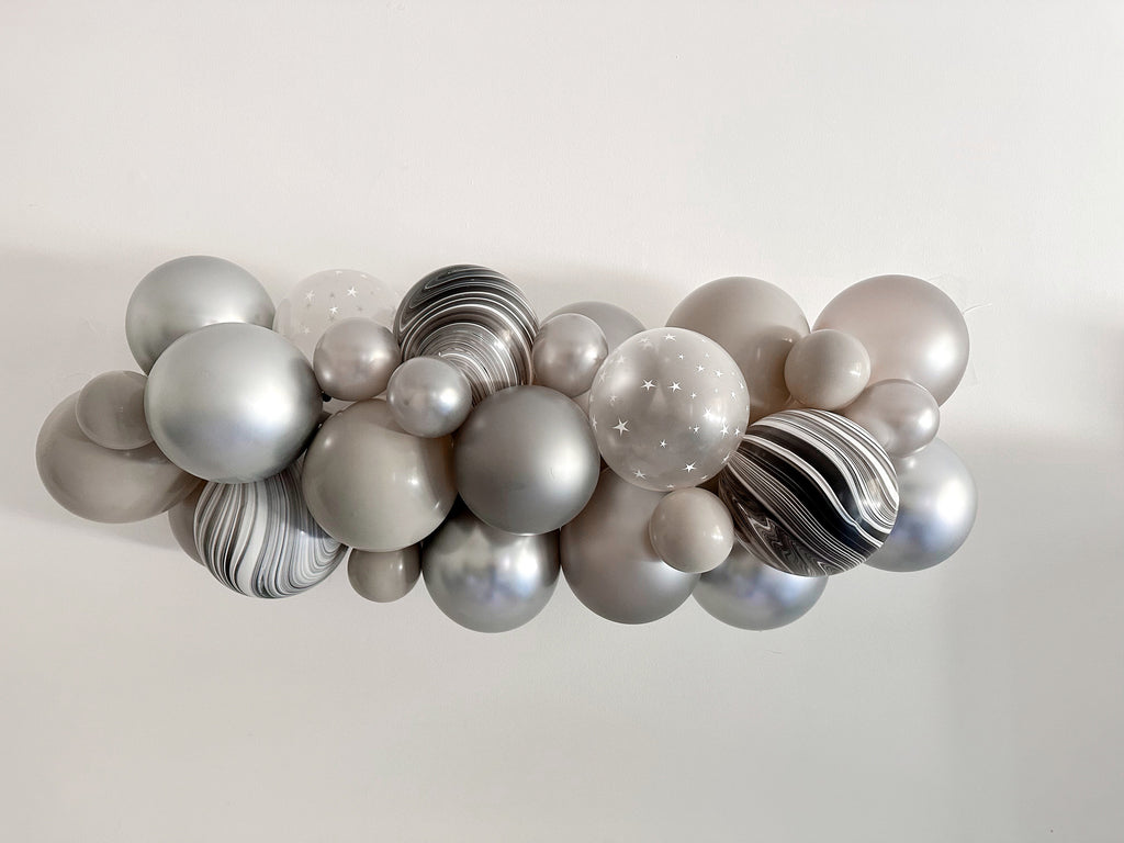 Are you ready to take your party to the next level? Our Silver Galactic Themed Balloon Garland is here to transform your space into a celestial wonderland that will leave your guests in awe. Whether you're celebrating a birthday, anniversary, or any special occasion, this balloon garland is the perfect way to add a touch of cosmic charm to your event. This garland measures 3ft, order 2 to extend to 6ft