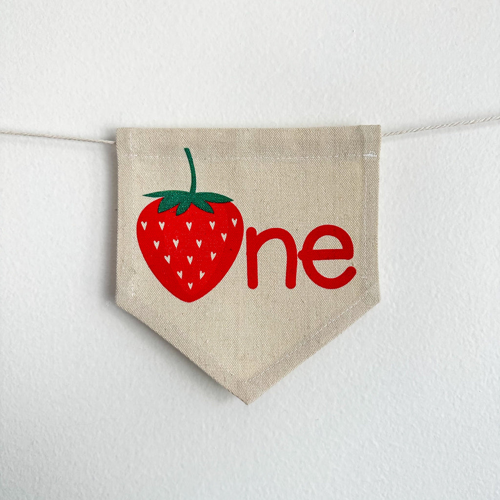 For your sweet strawberry who is turning a year old, this sweet berry 1st birthday highchair banner is the perfect flag to celebrate a milestone birthday. A vibrant red strawberry followed by a red "ne" to make the word ONE make this flag a classic for their first celebration. Banner includes 6 tassels in pink, sage green and red separated by wooden beads. Hang on a high chair as part of her cake smash photo session or above the cake table and when the party is over hang on the wall as part of her nursery room decoration. This strawberry cake smash sign makes an awesome photo prop and keepsake.