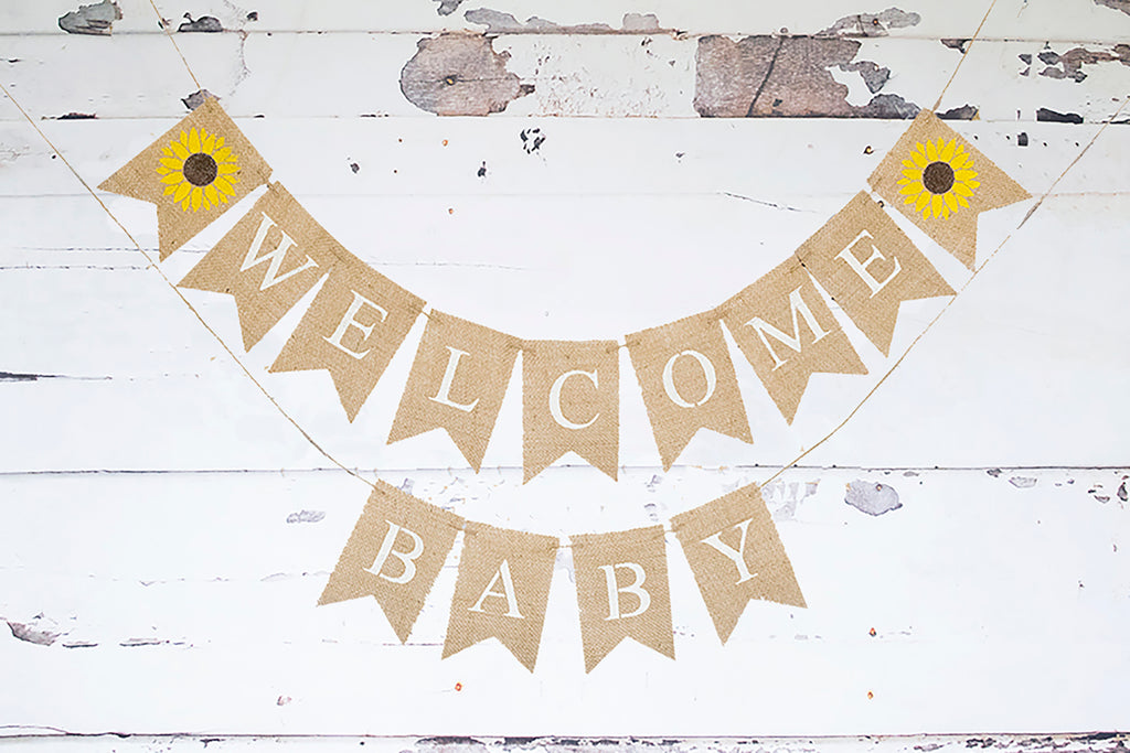Baby Shower Decor, Sunflower Welcome Baby Banner