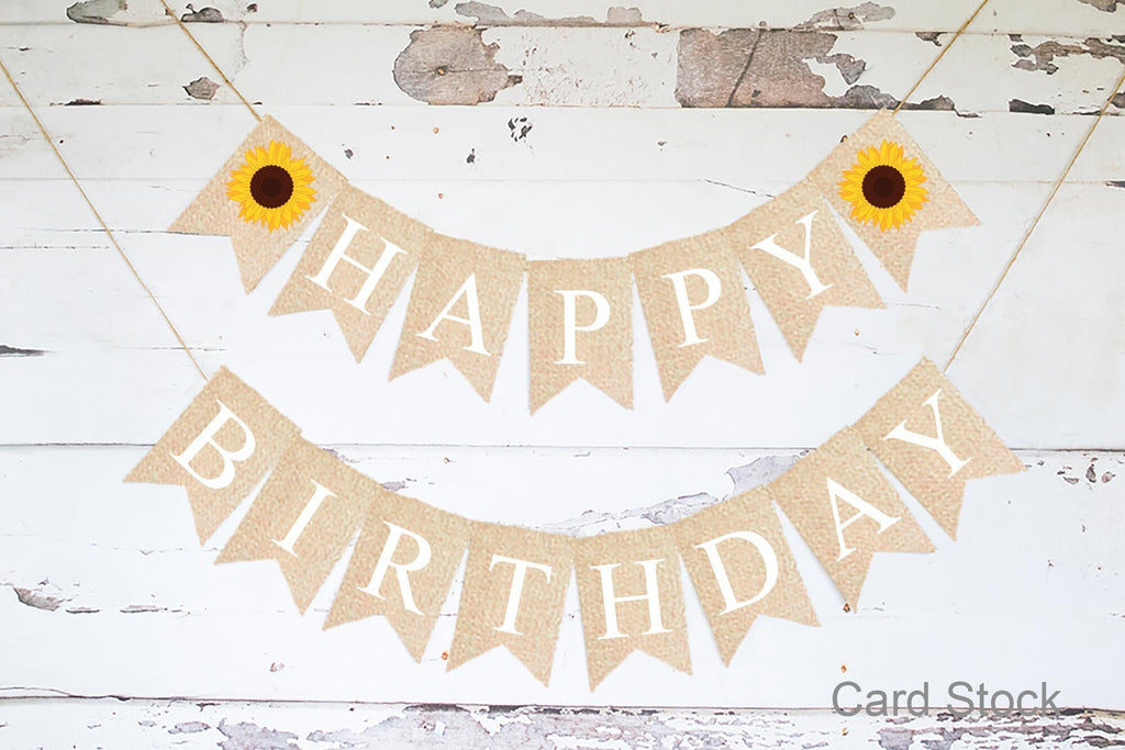 Sunflower Happy Birthday Card Stock Banner | Summer Flower Birthday Party Decorations