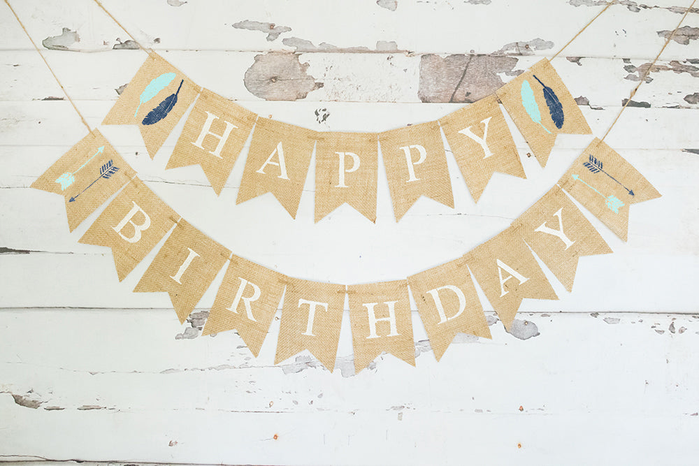 Tribal birthday party banner. A tribal happy birthday banner. Featuring feathers and arrows, this tribal-themed banner can be customized with your choice of colors for the arrows and feathers.