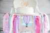 FINAL SALE! A Pink Hot Air Balloon for a 1st birthday party decor. Your little one will fly up up and away with this stunning first birthday banner. You will be blown away by this gorgeous up and away one year old party decor, in beautiful lavender and pink. This highchair banner is perfect for those smash cake photos and is great as a photo prop for the important first birthday photos. Hang on a high chair or above a cake table.