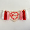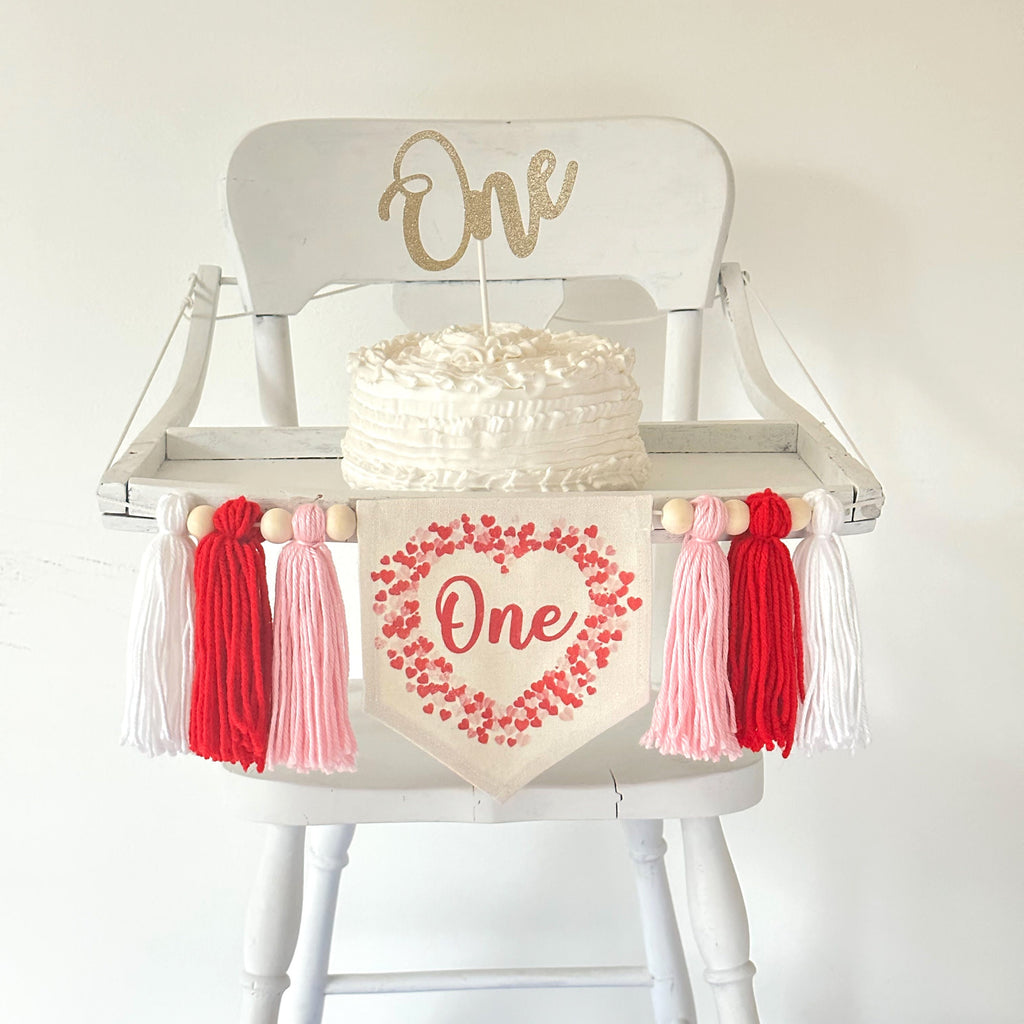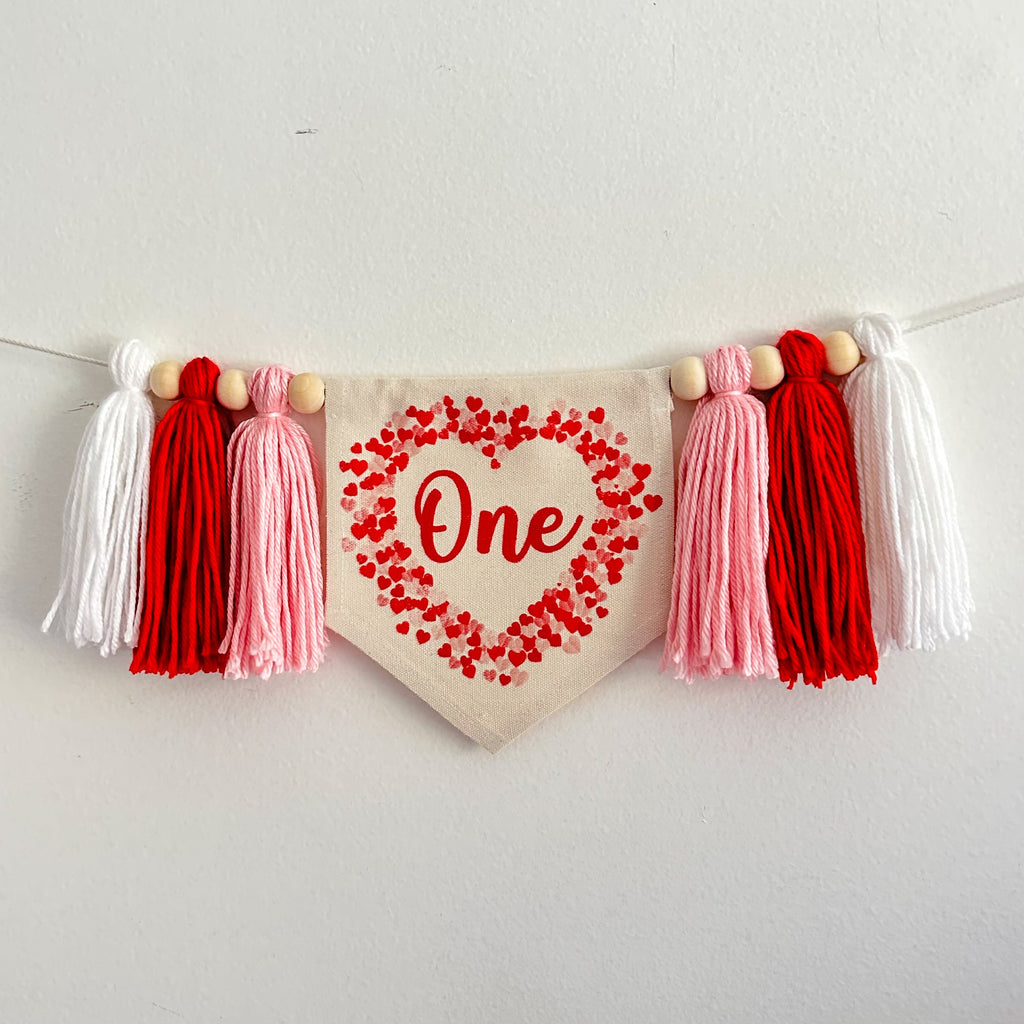 Valentine 1st Birthday Tassel Banner | Heart Highchair Decoration | Valentines Day First Birthday Party Sign