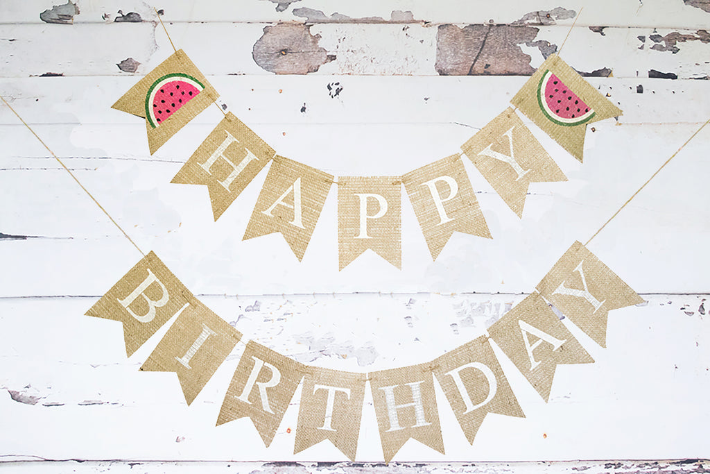 Birthday Decor, Watermelon Happy Birthday Banner