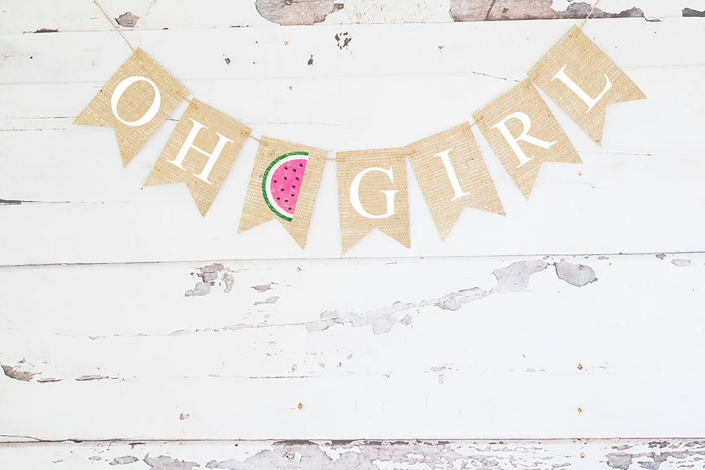 Watermelon Baby Shower Decoration. This summer gender reveal banner is perfect for that Little Melon baby shower. Gather your friends for this watermelon-themed shower and announce the arrival of your baby girl.