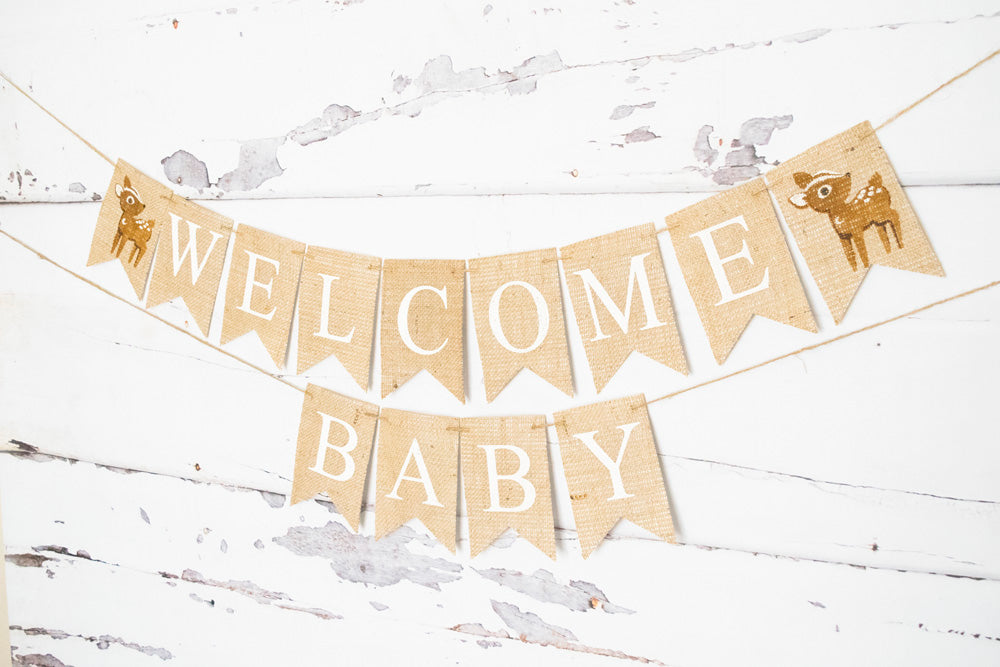 Welcome Baby Deer Banner for Baby Shower Decorations