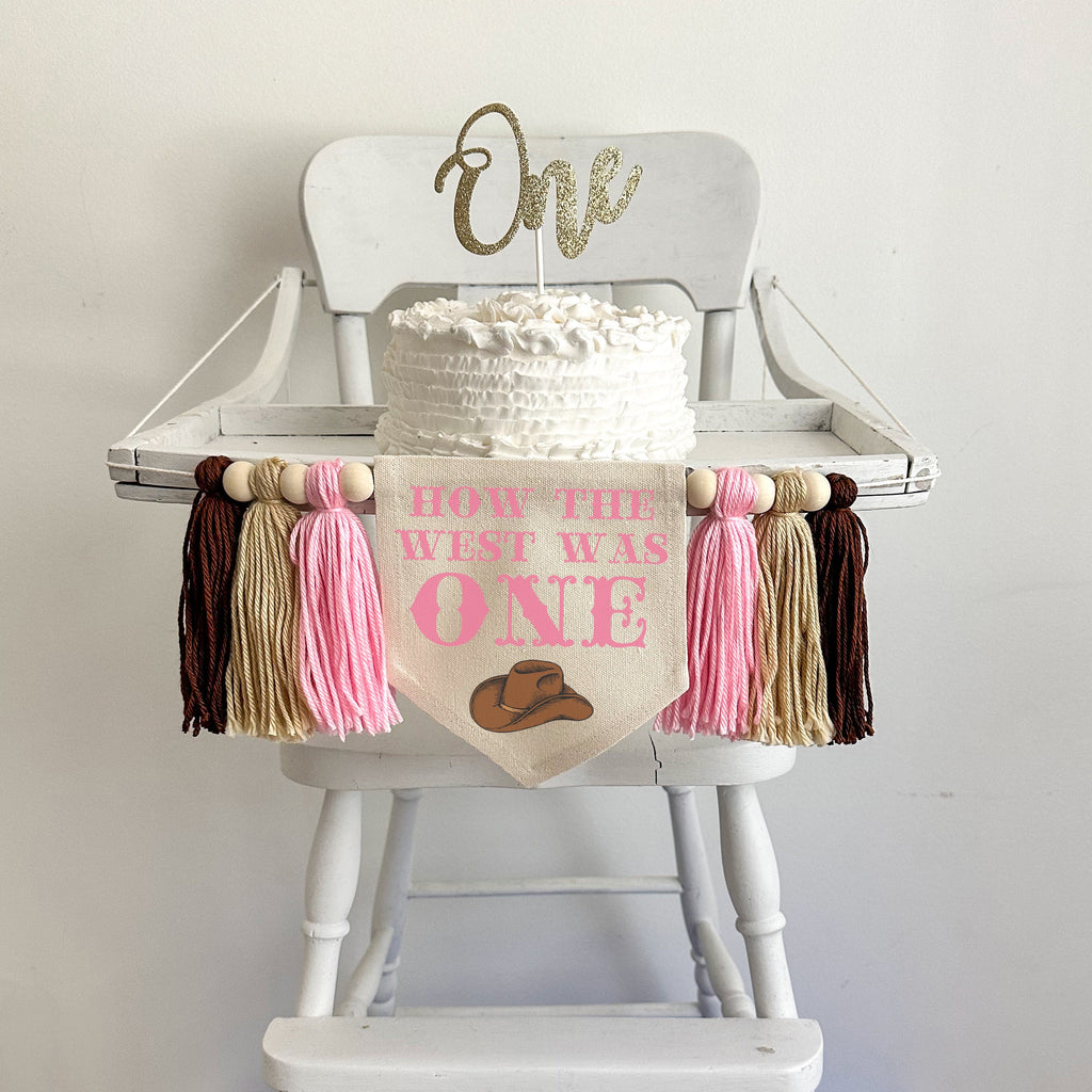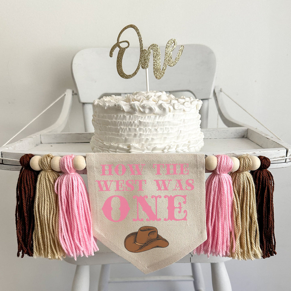 Western 1st Birthday Party Decorations | Cowgirl First Birthday | How the West was One Highchair Banner