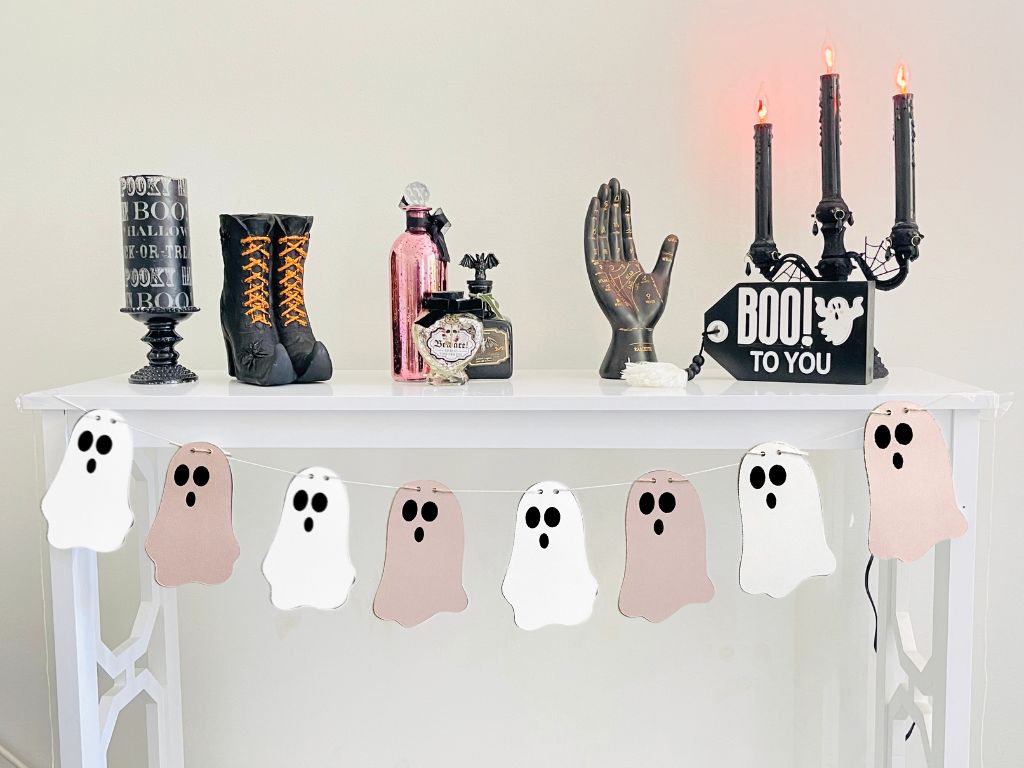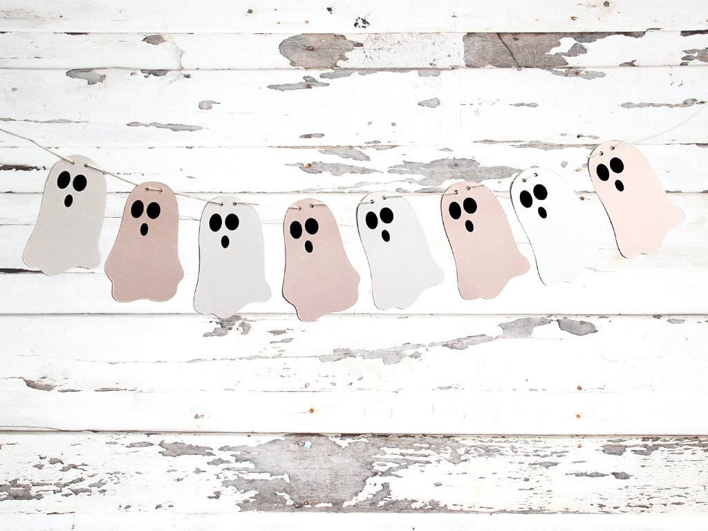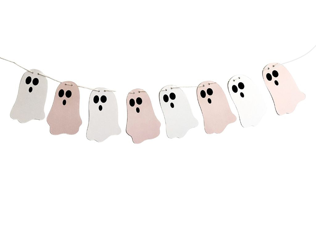 White & Pink Ghost Shape Banner | Halloween Party Decorations