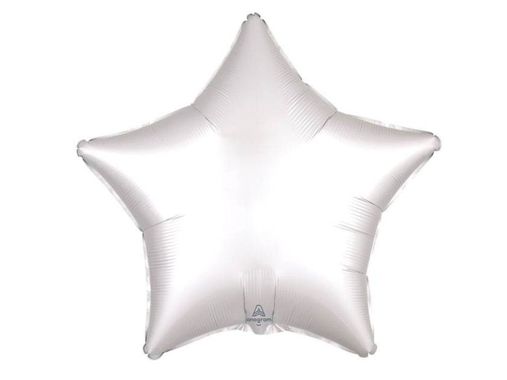 White Satin Star Balloon. This fun star-shaped balloon is the perfect addition to your party decor. This star-shaped balloon measures 20 inches when inflated.