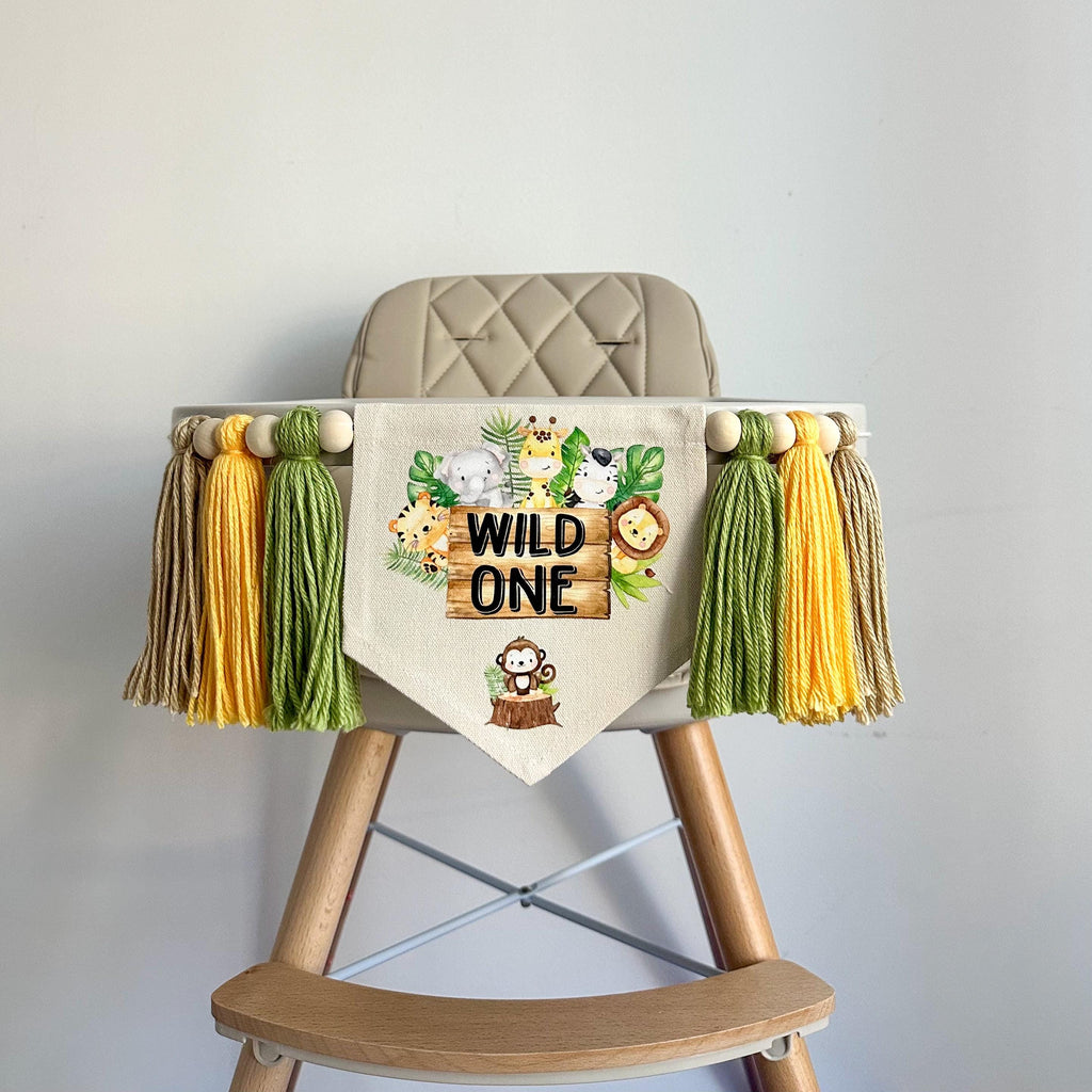 Wild One 1st Birthday Decorations | Wild Animals High Chair Banner