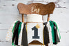 FINAL SALE! Where The Wild Things Are 1st birthday decor.  A Wild One 1st birthday party decoration.  Perfect to hang on a highchair or above a cake table.  This banner is stunning in black and gold with hints of green.  Perfect for your little Wild King.   This tribal first birthday banner makes a great photo prop, hang on his high chair, just add the cake!