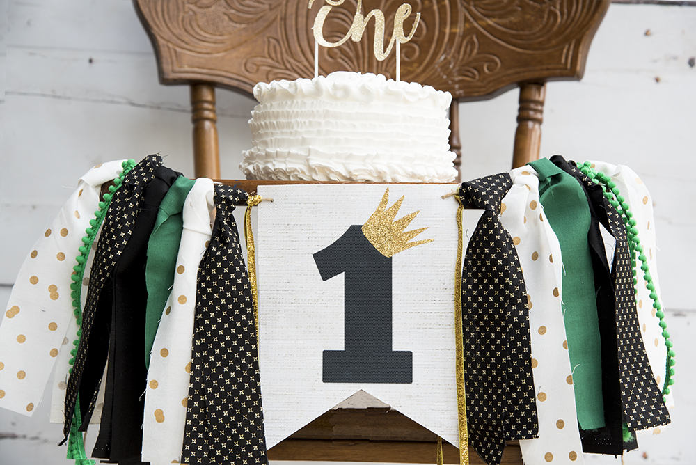 Tie the banner around any high chair using the string provided and secure in place with tape (included on the back of the flag).