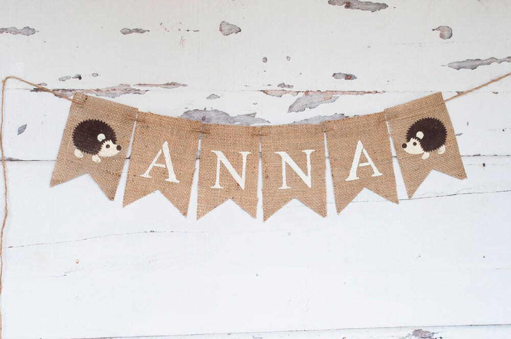 Two burlap hedgehog flags with the wording of your choosing
