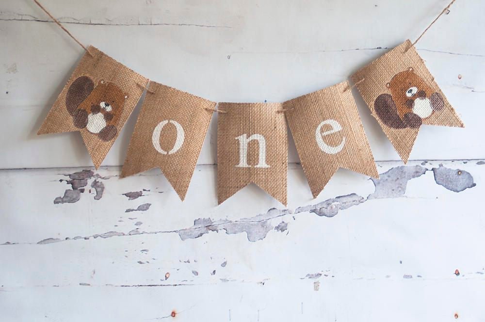 Woodland First Birthday Decoration. Cute and beautiful this beaver 1st birthday party banner will look awesome on a highchair, it can also be used in a cake smash photo shoot.